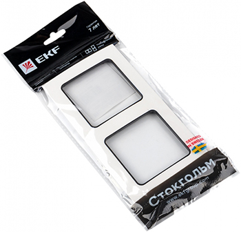 Рамка двухпостовая EKF EXM-G-305-10 "Стокгольм" (IP20), белый / черный