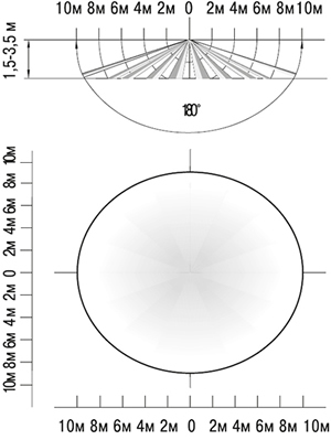 - Контроль передвижения объектов не только в зоне прямой видимости, но охват всего пространства вокруг датчика.