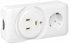 Розетка двойная EKF AS-250-32/16-O (РШ 32 А / Schuko 16 А, 250 В, IP20) открытой установки, белый