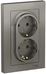 Розетка двухместная Schneider Electric ATN000924 AtlasDesign (16 А) скрытой установки, с заземлением, сталь