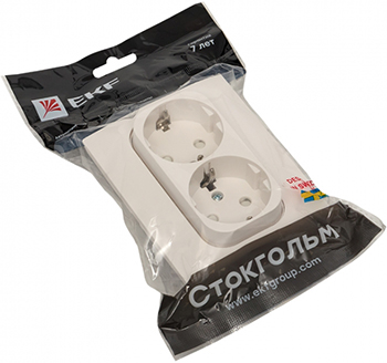 Розетка двухместная EKF EXR16-128-10 "Стокгольм" (16 А, IP20) скрытой установки, с заземлением и защитными шторками, в сборе, белый