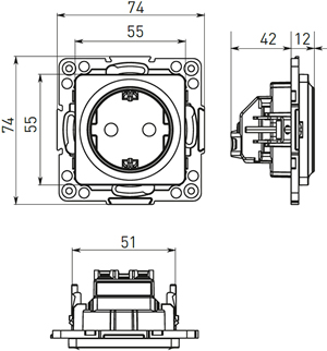| Тип изделия | розетка штепсельная с заземляющим контактом, с защитными шторками |