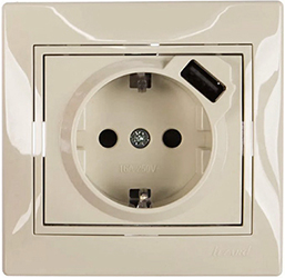 Розетка одноместная Lezard 701-0303-181 Mira (16 А, IP20) скрытой установки, с заземлением, c USB разъемом, кремовый