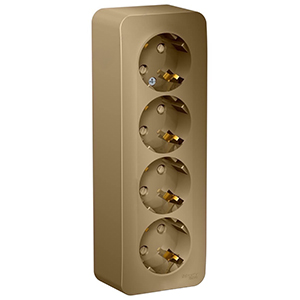 Розетка четырехместная Systeme Electric BLNRA011414 Blanca (16 А) с заземлением и защитными шторками, открытой установки, титан