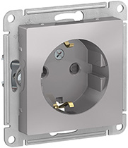 Розетка одноместная Schneider Electric ATN000345 AtlasDesign (16 А) скрытой установки, с заземлением, с защитными шторками, алюминий