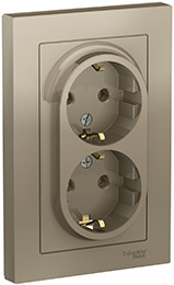 Розетка двухместная Schneider Electric ATN000524 AtlasDesign (16 А) скрытой установки, с заземлением, шампань