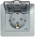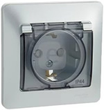 Розетка одноместная Schneider Electric GSL000348 Glossa (16А, IP44, в сборе) с заземлением и защитными шторками, с крышкой, алюминий