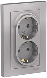 Розетка двухместная Schneider Electric ATN000324 AtlasDesign (16 А) скрытой установки, с заземлением, алюминий