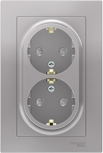 Розетка двухместная Schneider Electric ATN000326 AtlasDesign (16 А) скрытой установки, с заземлением и защитными шторками, алюминий