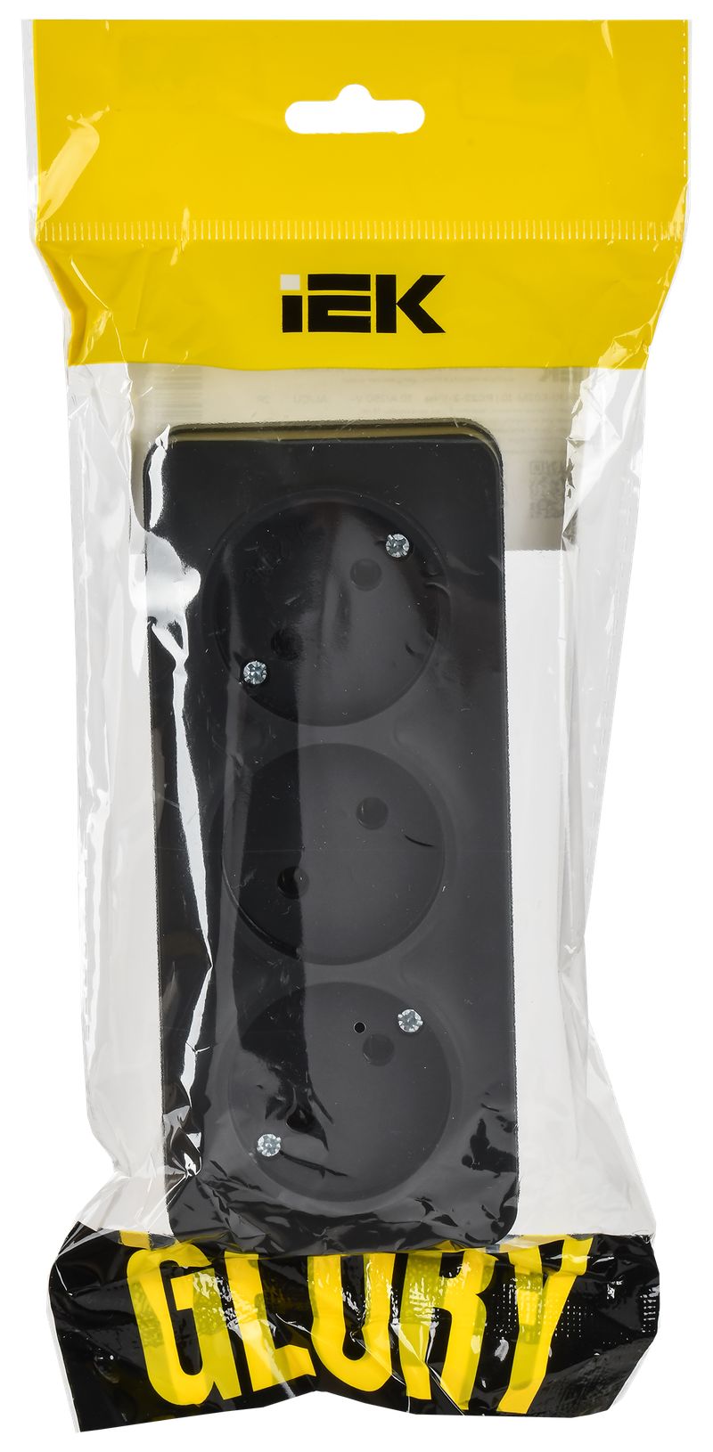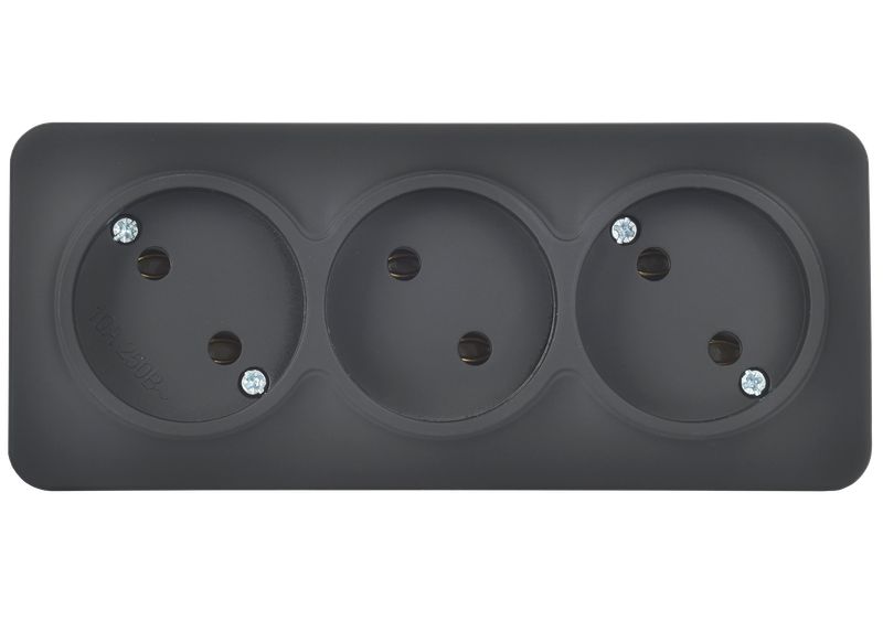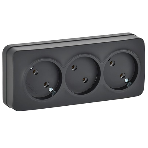 Розетка трехместная IEK РС23-2-ХЧм Glory (10 А, IP20) открытой установки, черный матовый