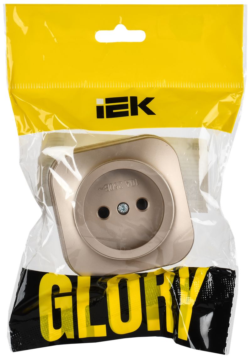 Розетка одноместная IEK РС20-2-ХШм Glory (10 А, IP20) открытой установки, шампань матовый