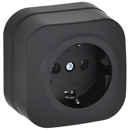 Розетка одноместная IEK РС20-3-ХЧм Glory (16 А, IP20) открытой установки, с заземлением, черный матовый