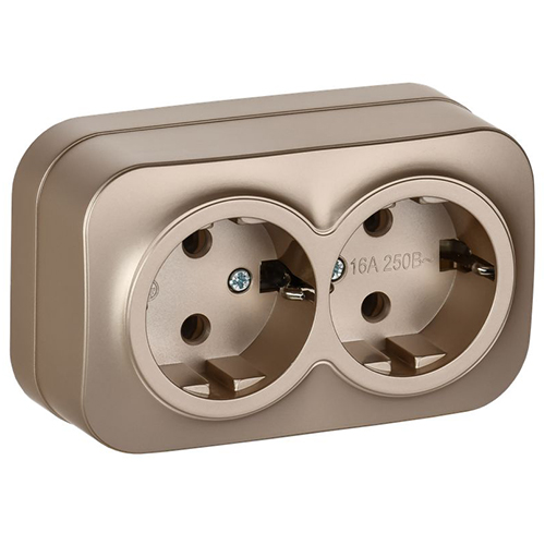 Розетка двухместная IEK РС22-3-ХШм Glory (16 А, IP20) открытой установки, с заземлением, шампань матовый