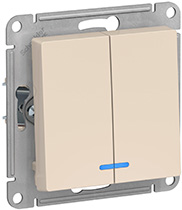 Выключатель двухклавишный Schneider Electric ATN000253 AtlasDesign (10 АХ) скрытой установки, с подсветкой, бежевый