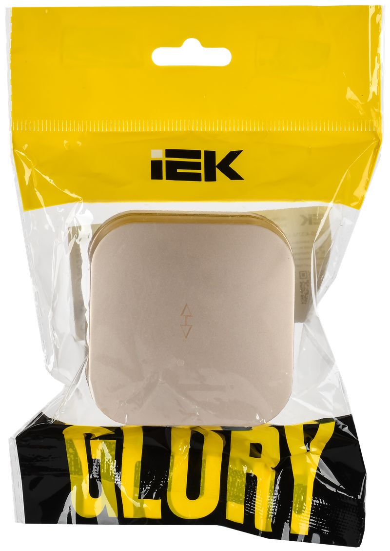 Выключатель одноклавишный проходной IEK ВСп10-1-0-ХШм Glory (10 А, IP20) открытой установки, шампань матовый