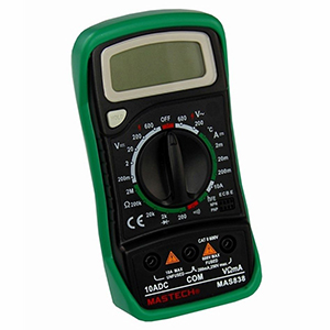 Карманный цифровой мультиметр MAS838 Mastech предназначен для измерения постоянного и переменного напряжения, постоянного тока, сопротивления, проверки диодов, измерения коэффициента усиления транзисторов, а также температуры.