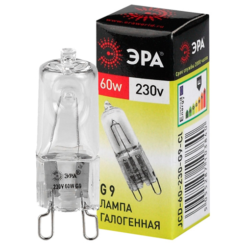 Лампа галогенная G9-JCD-60-230V-CL "Эра" (220 В, 60 Вт, 960 лм, прозрачная капсула)