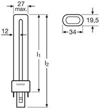 Укороченная компактная люминесцентная лампа с двухштырьковым цоколем с однооборотной колбой предназначена для освещения в офисах, общественных зданиях.