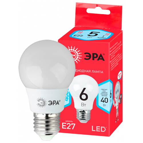 Лампа светодиодная "Эра" LED A55-6W-840-E27 R Red Line (груша, 220 В, 6 Вт, 480 лм, 4000 К)