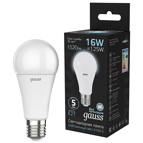 Лампа светодиодная Gauss 102502216 (А60 груша, Е27, 16 Вт, 1520 лм, 4100 К)