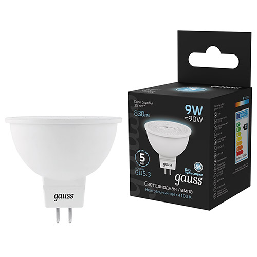 Лампа светодиодная Gauss 101505209 (MR16 софит, GU5.3, 9 Вт, 830 лм, 4100 К)