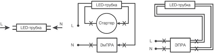 Для этих светодиодных трубок нет необходимости в заглушке дросселя, так как питание 220 В подается напрямую на патроны цоколя с обеих сторон.
