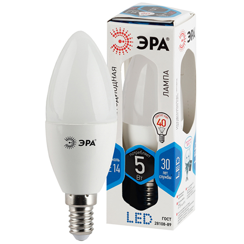 Лампа светодиодная LED B35-5W-840-E14 "Эра" (свеча, Е14, 5 Вт, 400 лм, 4000 К)