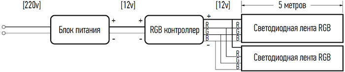 - Мощность блока питания должна превышать общую мощность светодиодной ленты в среднем на 20%.