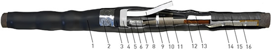 9 - стеклолента. 11 - жильная трубка. 13 - герметик маслостойкий. 15 - герметик узла заземления. |