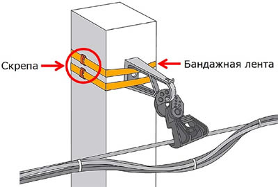 - Зажим ЗПН1500 фиксирует несущую нейтраль СИП-2.
