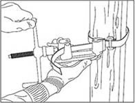 - Натянуть бандажную ленту вокруг опоры, вращая рукоятку инструмента ИНСЛ-1.