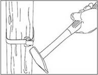 Конец ленты бандажной вставить в скрепу и согнуть при помощи молотка.