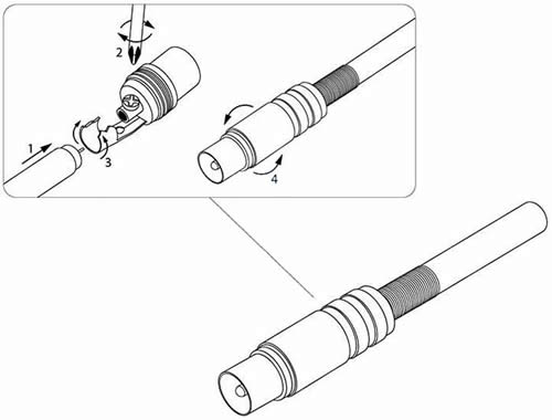 Оснащен специальным металлическим пружинным амортизатором, который позволяет кабелю гнуться только с безопасным радиусом изгиба.