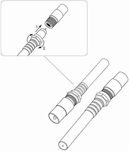 | Разъем F устанавливается на кабель методом накрутки гильзы разъема на внешнюю оболочку кабеля после соответствующей зачистки контактов. Какие-либо специальные инструменты для монтажа не требуются. | Соединение кабеля производится методом накрутки F-коннектора, после соответствующей зачистки контактов радиочастотного кабеля. Какие-либо специальные инструменты для монтажа не требуются. |