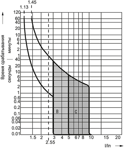 | Характеристика срабатывания от сверхтоков, тип | С |