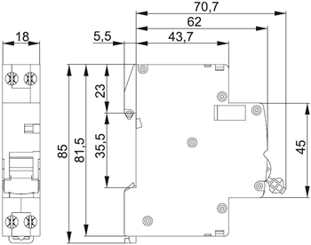 - Компактное исполнение 18 мм (полюс + нейтраль).