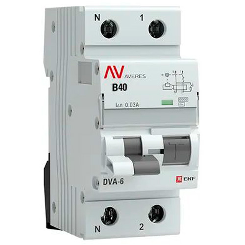 Автоматический выключатель дифференциального тока DVA-6 1P+N 40А EKF Averes (40 А, тип AC электромеханический, характеристика С, 30 мА, 6 кА)