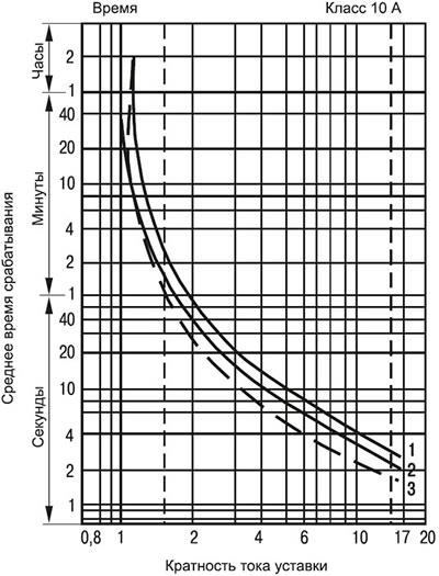 1 - симметричный трехфазный режим из холодного состояния. 2 - симметричный двухфазный режим из холодного состояния. 3 - симметричный трехфазный режим после длительного прротекания номинального тока (горячее состояние). |