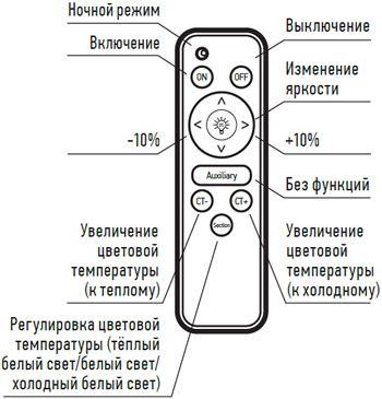 - Управление светильником при помощи пульта дистанционного управления.