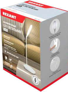 Светильник светодиодный настольный Rexant 609-002 Click (4 Вт, 350 лм, 4000 К, диммер) с аккумулятором, на подставке, белый