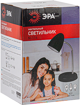 Компактный настольный светильник N-116-Е27-40W-BK "Эра" с цоколем Е27 может использоваться с лампой накаливания, компактной люминесцентной или светодиодной лампой.