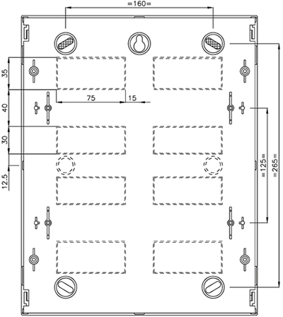 - Крепежные отверстия овальной формы для удобства установки и вертикального выравнивания щита.