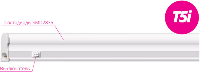 Светильник светодиодный "ФАZA" ДПО-T5i 450 6Вт 4000K IP20 (510 лм, IP20) с выключателем, длина 450 мм